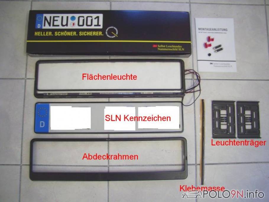 Diese Anleitung wurde verfasst von PoloFun 2004. Hier will euch PoloFun 2004 vom Einbau, seinen Erfahrungen und den ersten Eindrücken des selbstleuchtenden Nummernschilds (SLN) von 3M berichten.