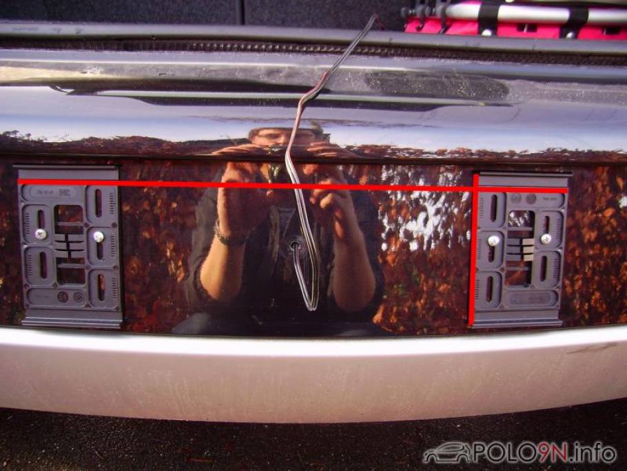 Man kann am besten mit dem alten Blechkennzeichen die Position überprüfen. Einfach das Kennzeichen an die Leuchtenträger ranhalten und überprüfen, ob die Leuchtenträger die gleiche Höhe haben und gerade sind.