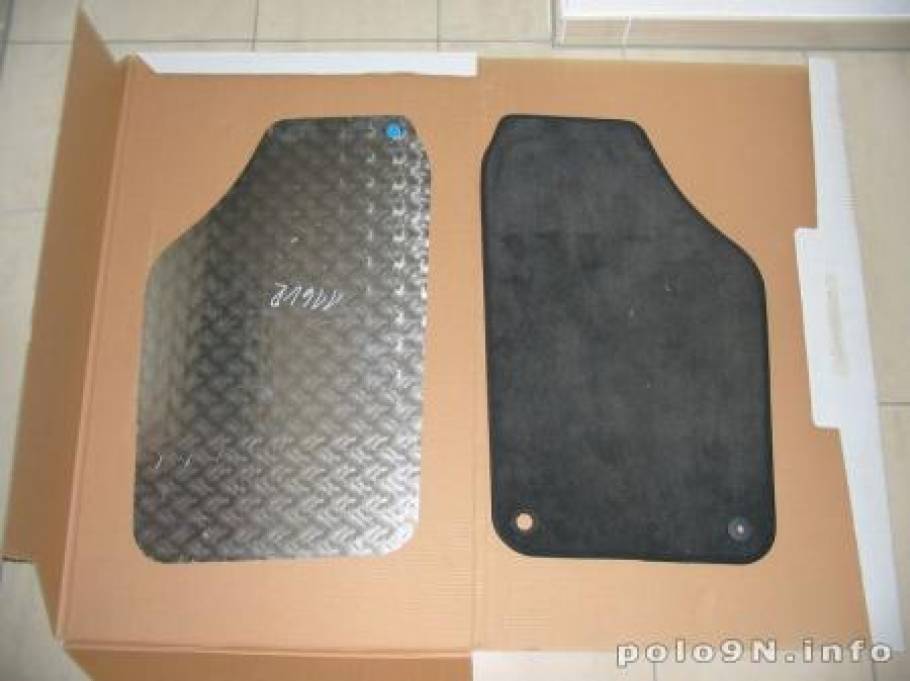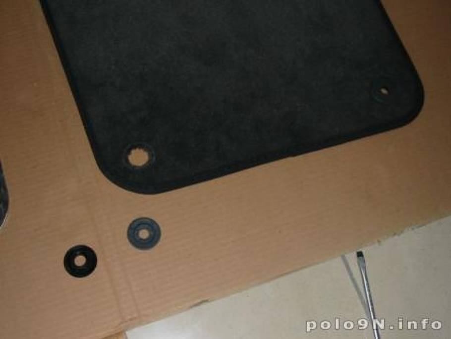 Wir legen die beiden Fussmatten nebeneinander. In der originalen Fussmatte stecken noch die „Gegenstücke“ für die Pins, die im Boden des Polos stecken.