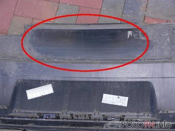 Nun fehlt nur noch die Aussparung im Stoßfänger bzw. im unteren Ansatz. Wenn man die Innenseite reinigt, kann man darauf schon eine Schablone erkennen. Ich habe die Öffnung nicht ganz so groß gewählt, außerdem muß sie nach unten offen sein.