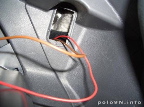 So. Nun einfach die vorgestanzte ovale Fläche an der linken Seite des Handschuhfaches herausbrechen aber vorsichtig. Das war schon das schwierigste: jetzt müßt ihr einfach nur zwei Leitungen ziehen.