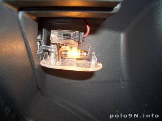 Für den Polo 9N/9N3 gibt es keine Handschuhfachbeleuchtung, auch nicht als Sonderausstattung. Die Nachrüstung im OEM-Design ist allerdings möglich.
