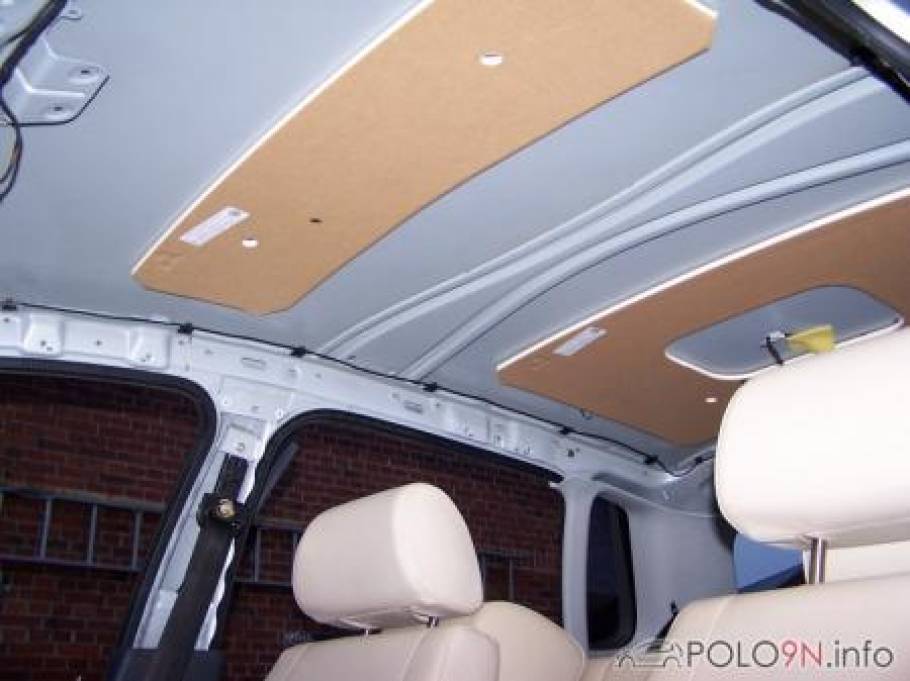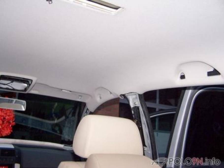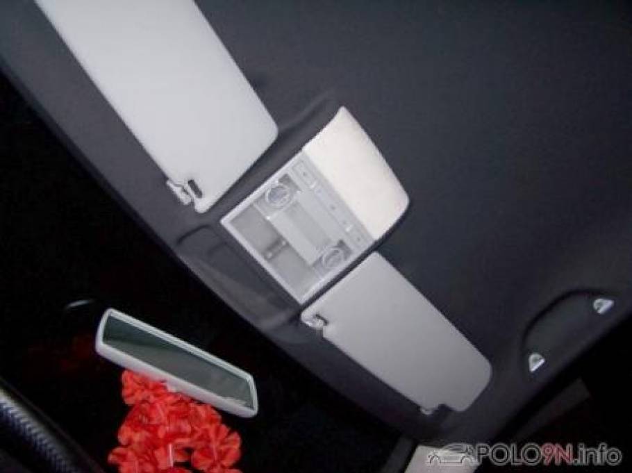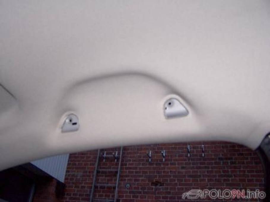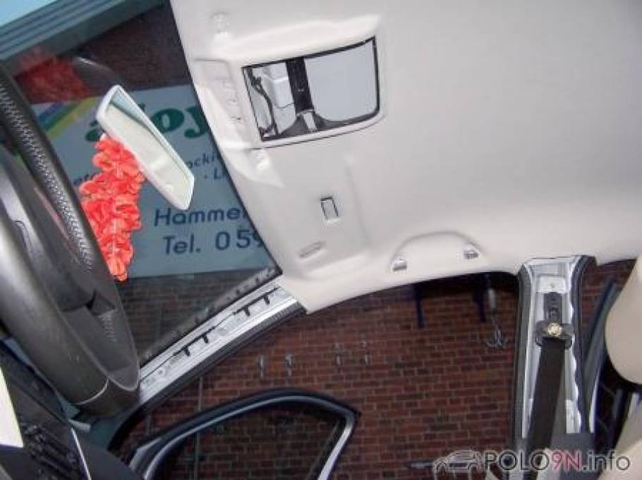 Die kleine Sonnenblende vorne muss noch angebaut werden, da keine Löcher vorhanden waren. Diese gibt es auch in schwarz aus dem G4 oder Lupo GTI. Ansonsten sind alle Löcher bereits vorhanden. Der GTI-Himmel passte ohne Probleme in den 9N.