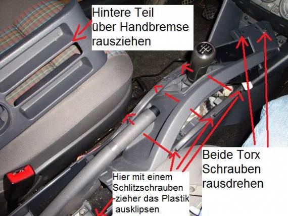 Zu Beginn muss die Mittelkonsole entfernt werden, wobei ihr im Grunde nur den hinteren Teil komplett rausnehmt. Ihr könnt wirklich mit viel Gewalt alles entfernen, da geht nichts kaputt. Den vorderen Teil dann nach links abwinkeln.