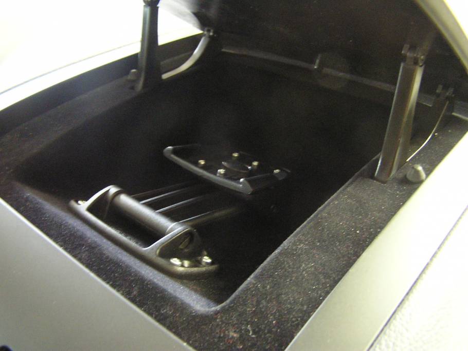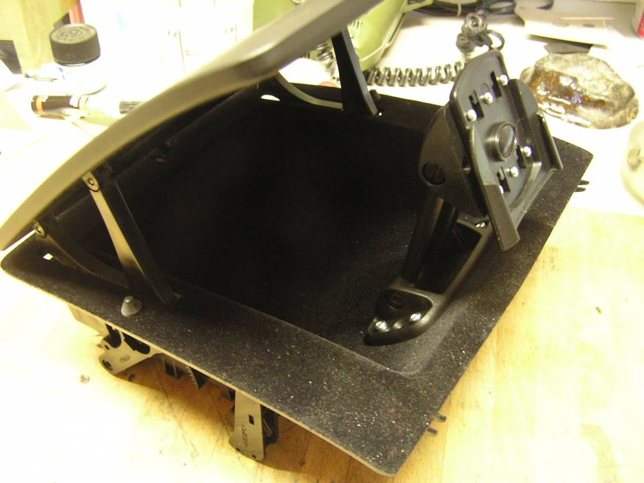 Der Clou des Umbaus ist eine Haltenase, die dazu dient den Deckel von Ablagefach zu arretieren, damit es nicht die ganze Zeit komplett offen steht. Durch kippen der Halterung wird der Deckel arretiert.