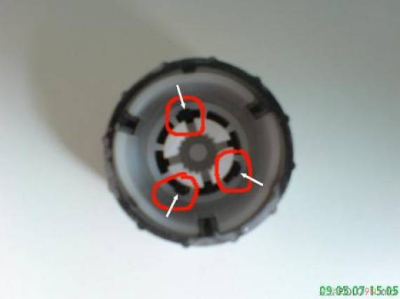 Habt ihr die Knöpfe ab, sieht man von hinten im inneren Kranz drei kleine schwarze Nasen. Diese mit dem kleinen Schraubendreher und Gefühl alle nacheinander oder auch gleichzeitig zum Mittelpunkt drücken.