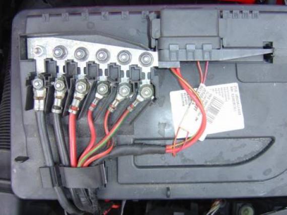 Motorhaube öffnen, oberste Batterieabdeckung abnehmen.