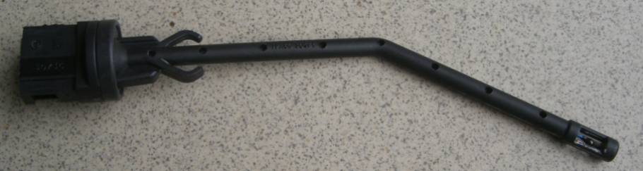 Hat man den Halter gelöst kann man schon den Stecker mit den grünen Anschlussleitungen erkennen (Bild 4, roter Kreis). In der Originalposition des Sensors verhindert ein direkt dahinter verlaufender Kabelstrang das Herausziehen des Steckers. Also müsst ihr den Geber erst mal 5cm gerad heraus ziehen. Dann könnt ihr den Stecker lösen und den Geber vollständig heraus ziehen.