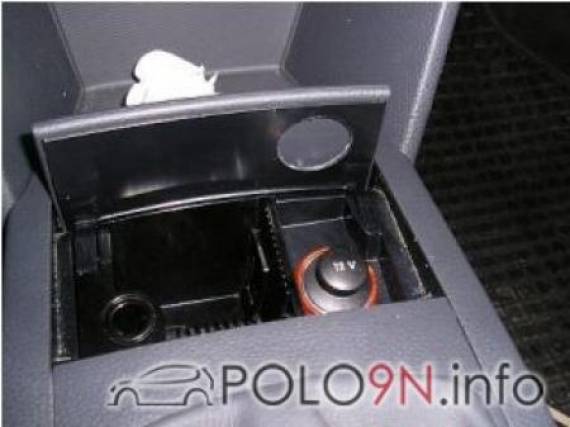 Bevor man nun mit dem Bohren beginnt, stopft man das Taschentuch in den Zigarettenanzünder, damit keine Späne/Staub in die Buchse fallen.