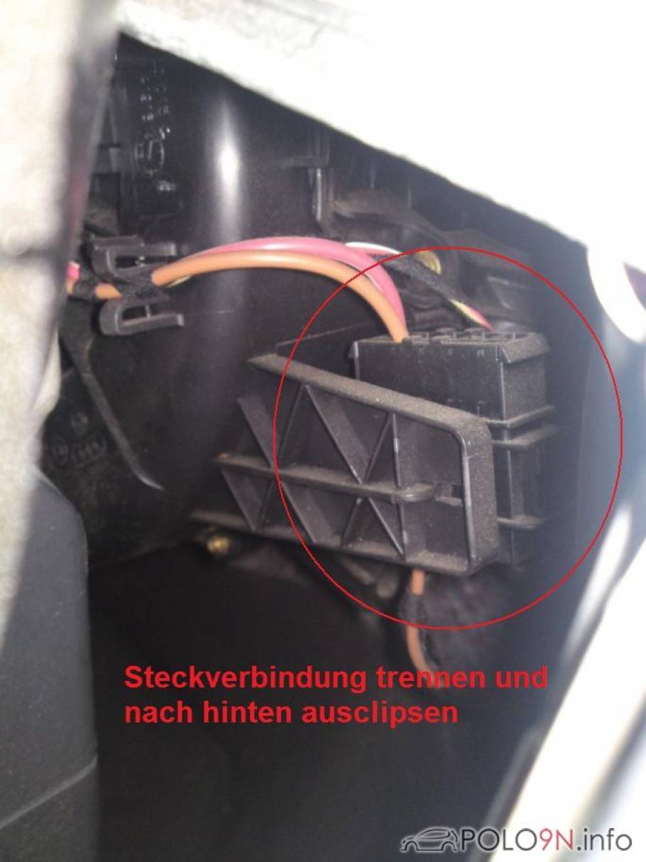 Um ordentlich arbeiten zu können, trennen wir diese Steckverbindung und ziehen sie nach hinten weg.