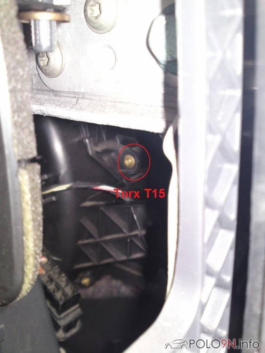 Dann müsst ihr euch in den Fußraum (logischerweise auf der Beifahrerseite) legen, um die zweite Torxschraube (ebenfalls T15) zu lösen. (Zur Orientierung: Linke Seite entspricht Türe/Kotflügel Beifahrerseite, rechte Seite ist Richtung Mittelkonsole).