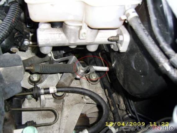 Greift man hinter die abgebildete Leitung, kann man den Wegstreckensensor (oder die Attrappe, sollte keiner verbaut sein) schon ertasten.