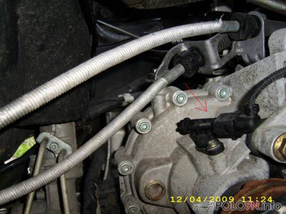 Der Wegstreckensensor befindet sich, vorm Auto stehend, hinter dem Motor.