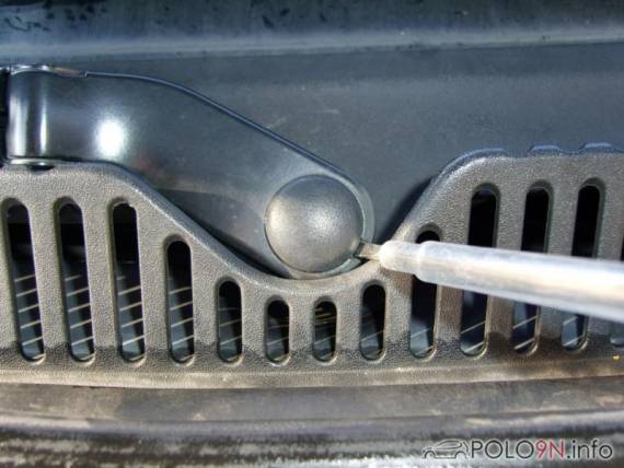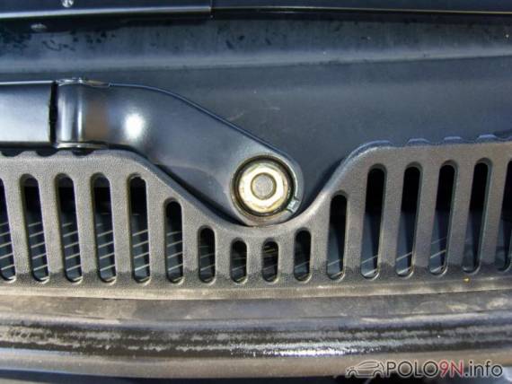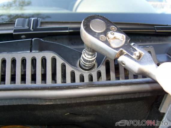 Das gesamte Wischergestänge hält nun noch an zwei 10er Schrauben; diese drehen wir raus.